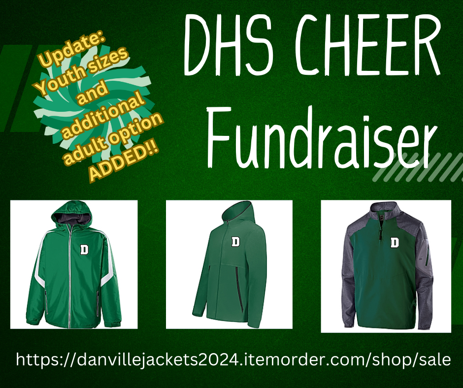 Cheer is selling jackets! Get you a Danville jacket in time for cold and rain while repping Danville!